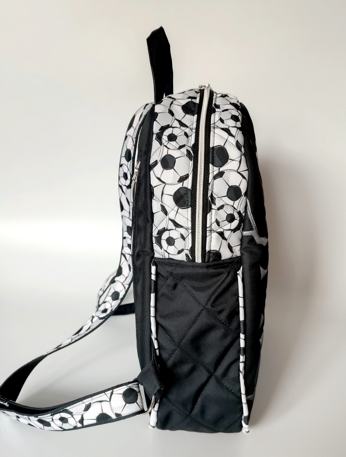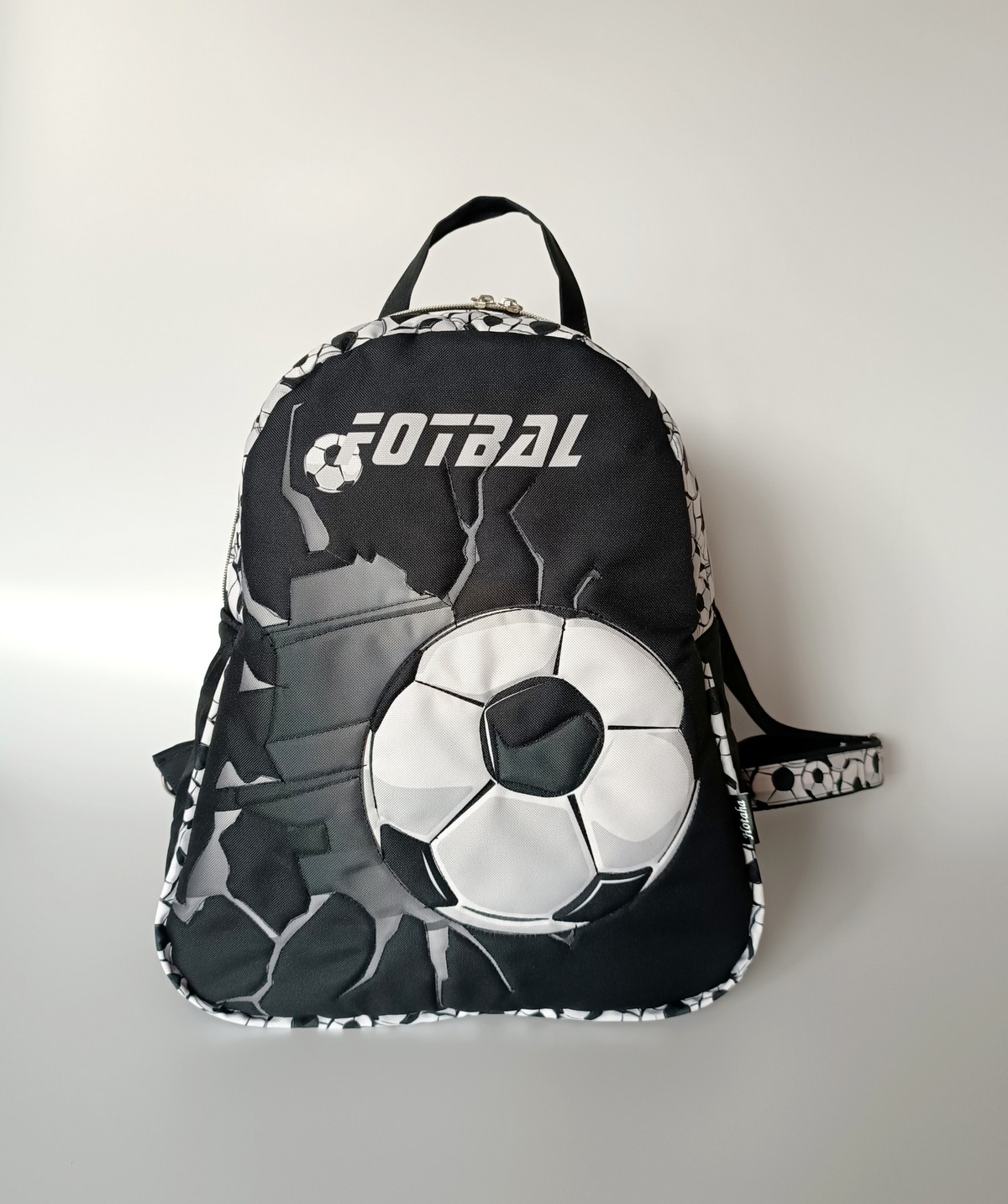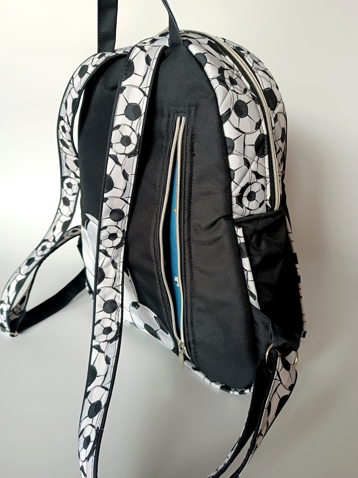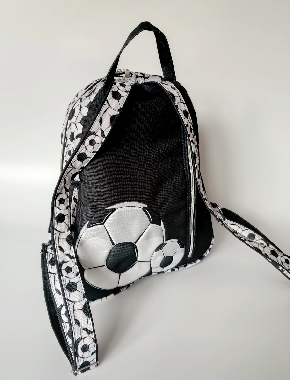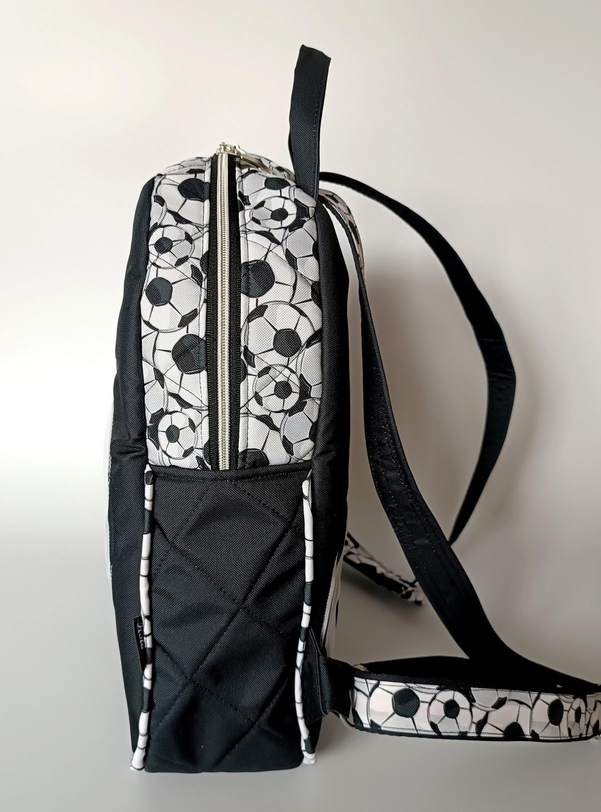 Větší batoh, vyztužený pěnou a celý prošitý.