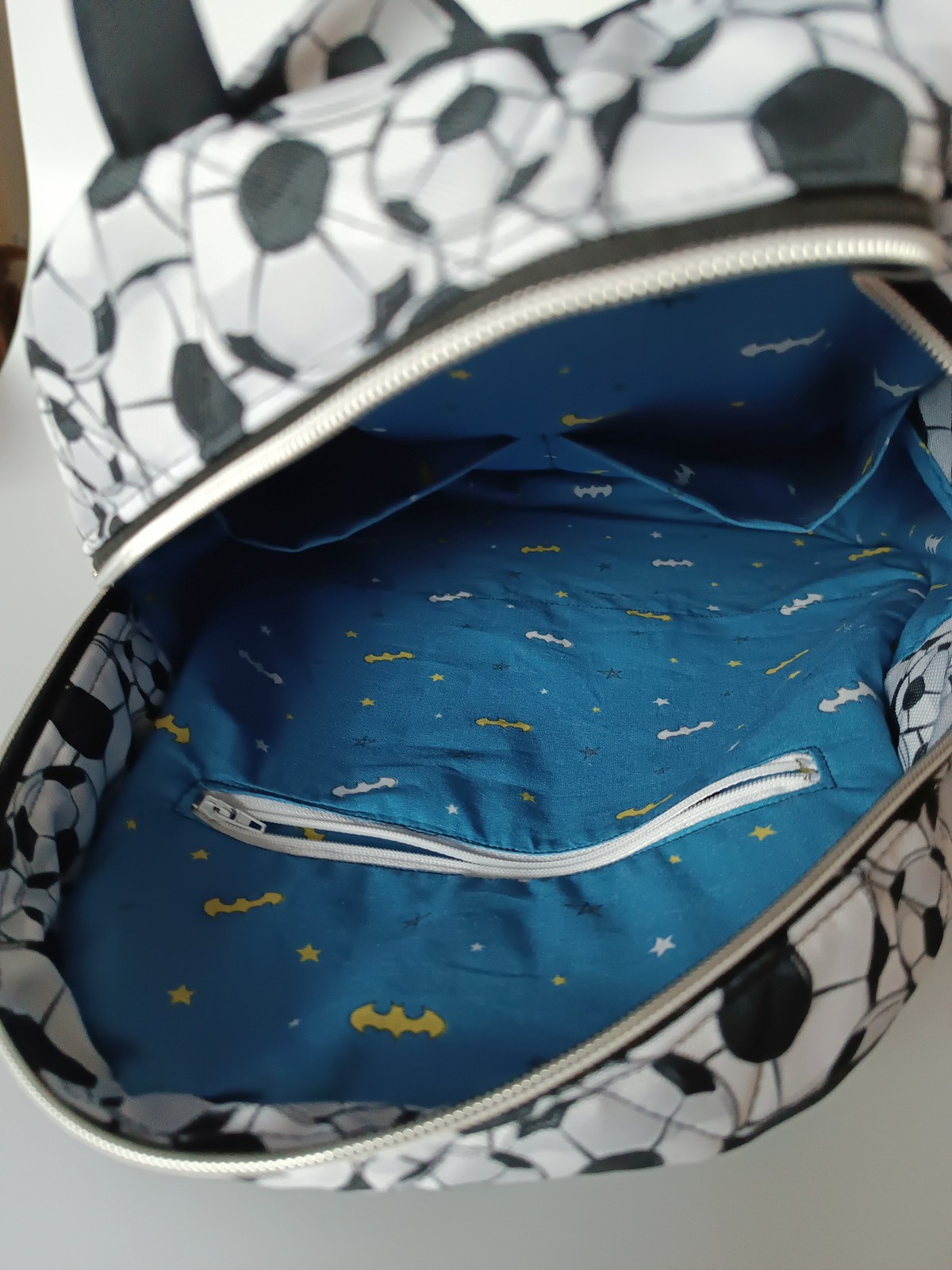 Podšívka je bavlněná, uvnitř jsou dvě obyčejné kapsy a jedna velká na zip.