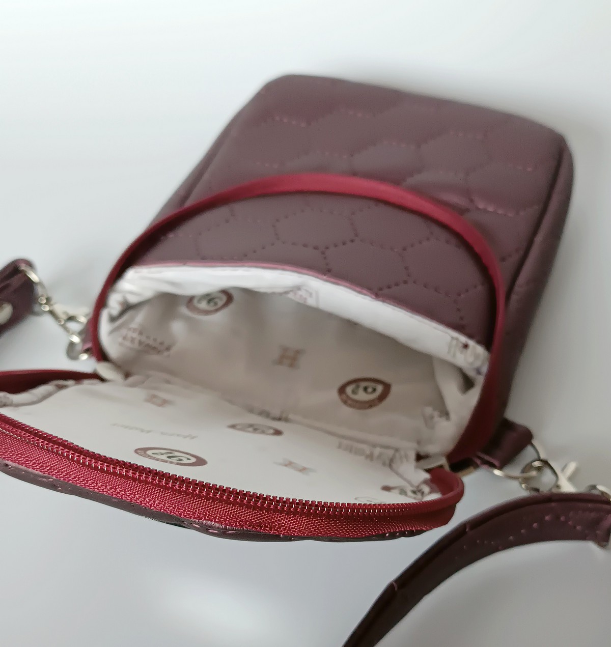 Kabelka je vyztužená pěnou. Uvnitř bavlněná podšívka.