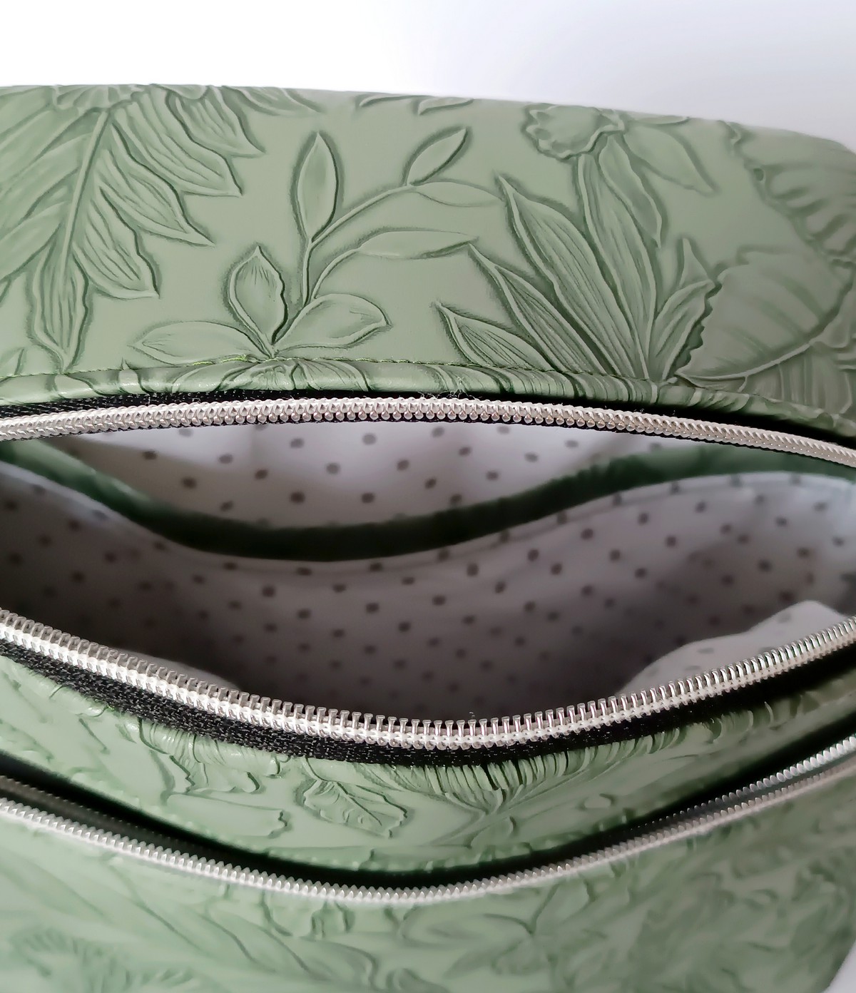 Kabelka je vyztužená pěnou. Uvnitř bavlněná podšívka s našitou kapsičkou.