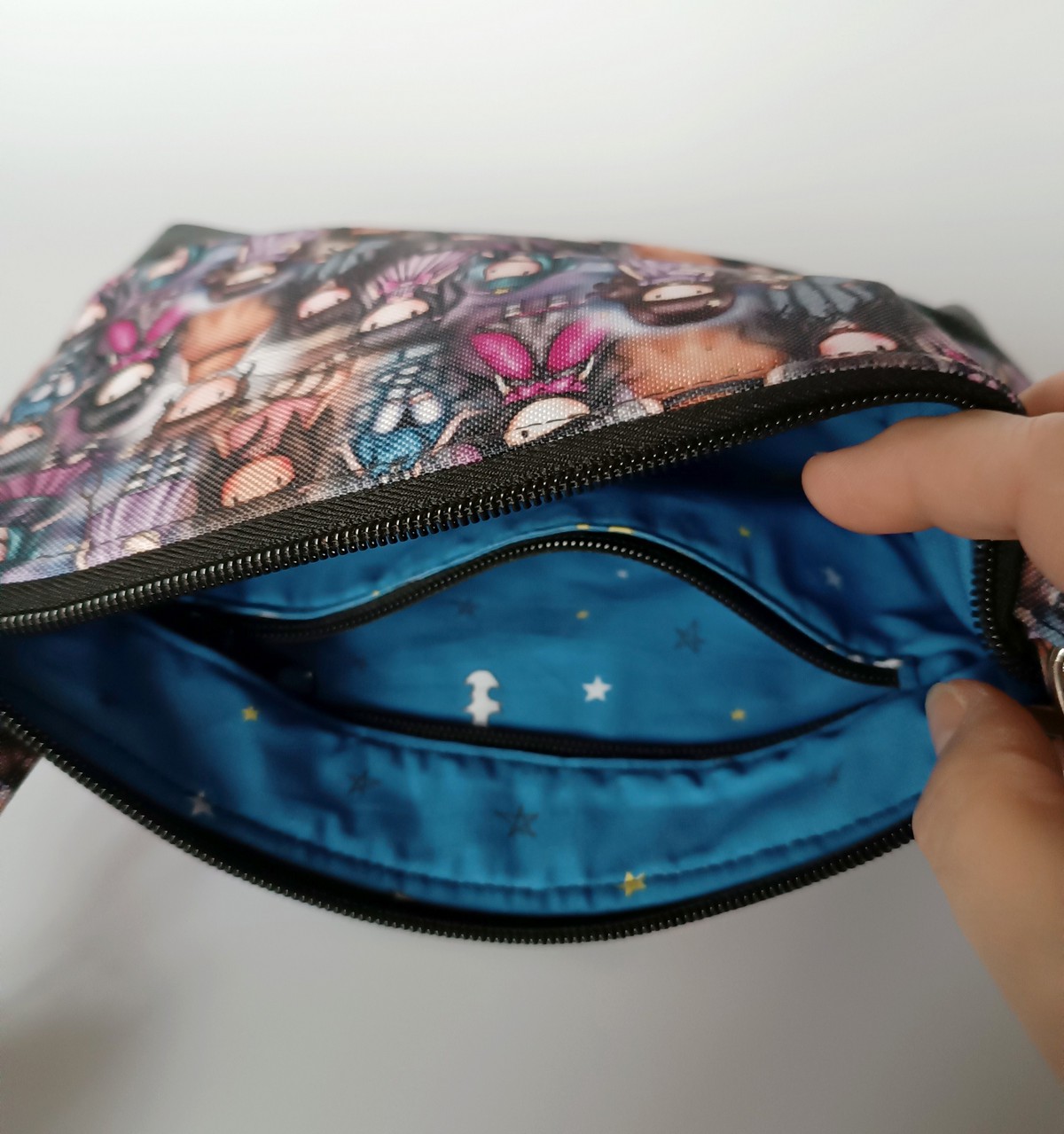 Uvnitř bavlněná podšívka s kapsičkou na zip.