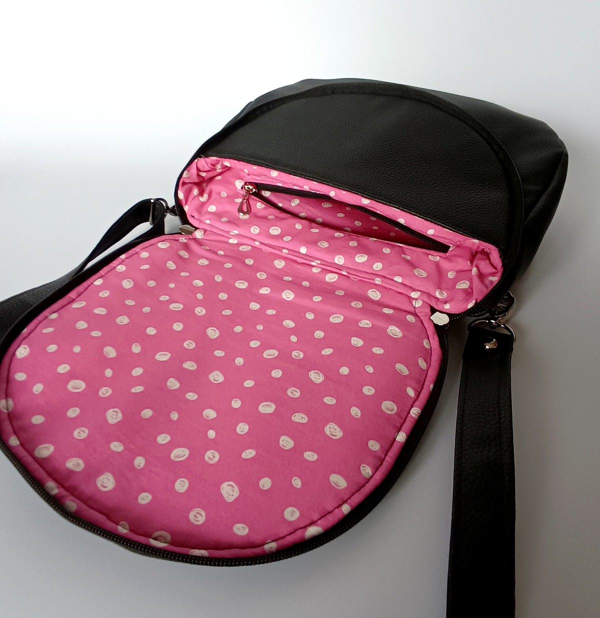 Kabelka je vyztužená pěnou. Uvnitř bavlněná podšívka s kapsičkou na zip.