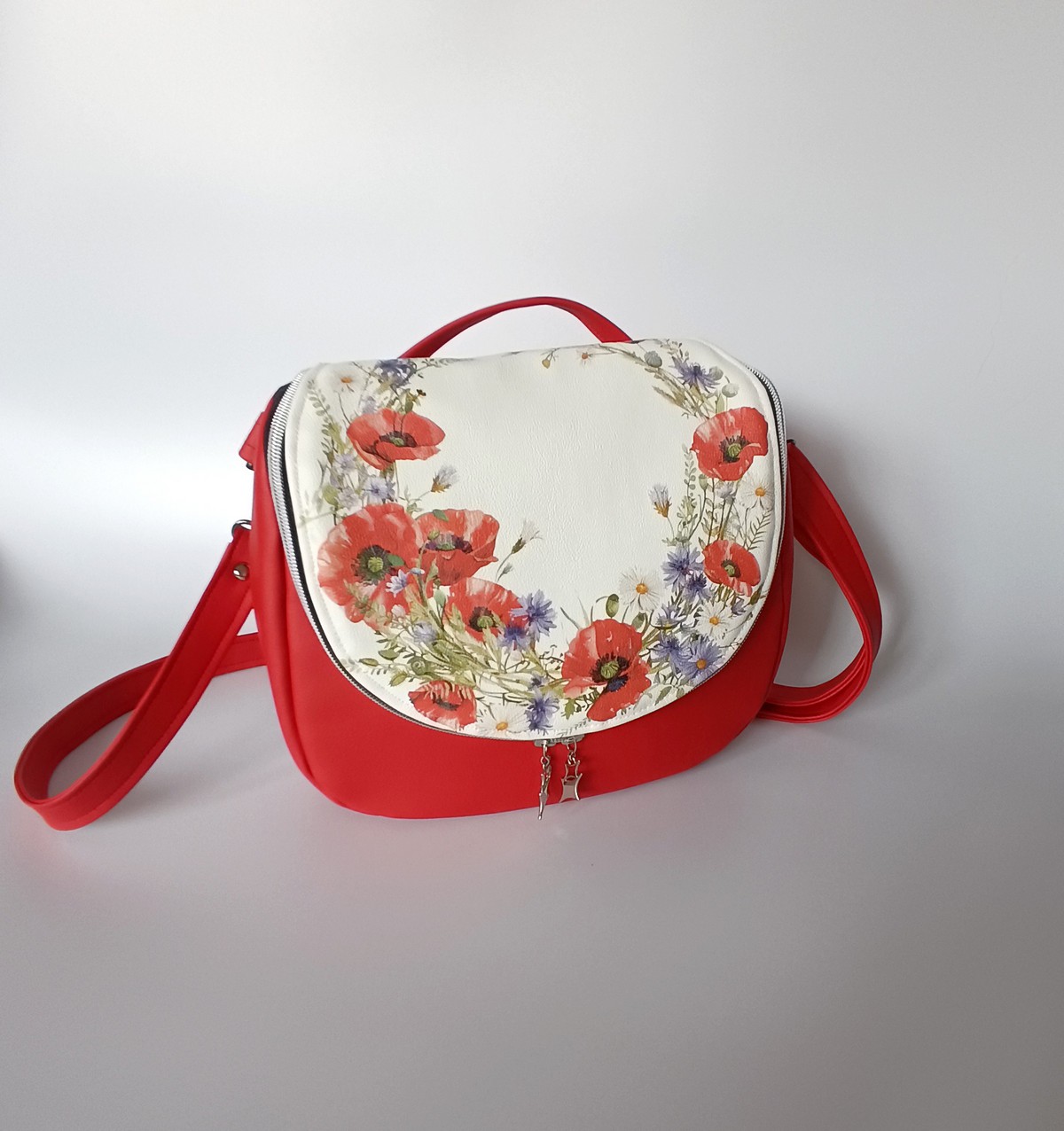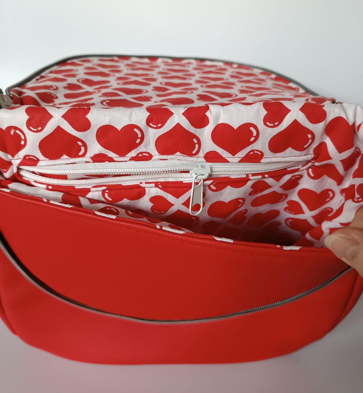Kabelka je vyztužená pěnou. Uvnitř bavlněná podšívka