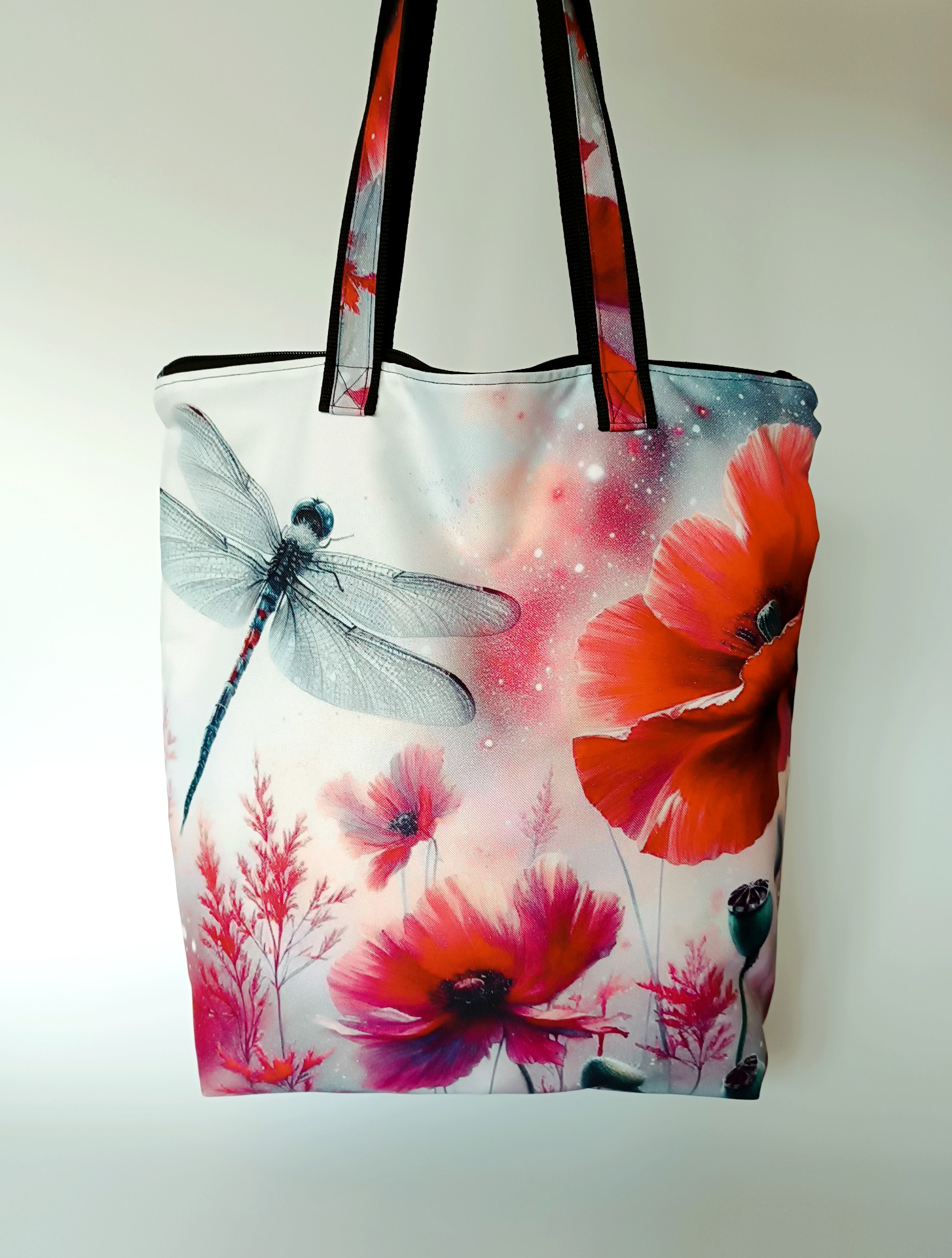 Nákupní taška s dlouhými uchy. Zapínání na zip.