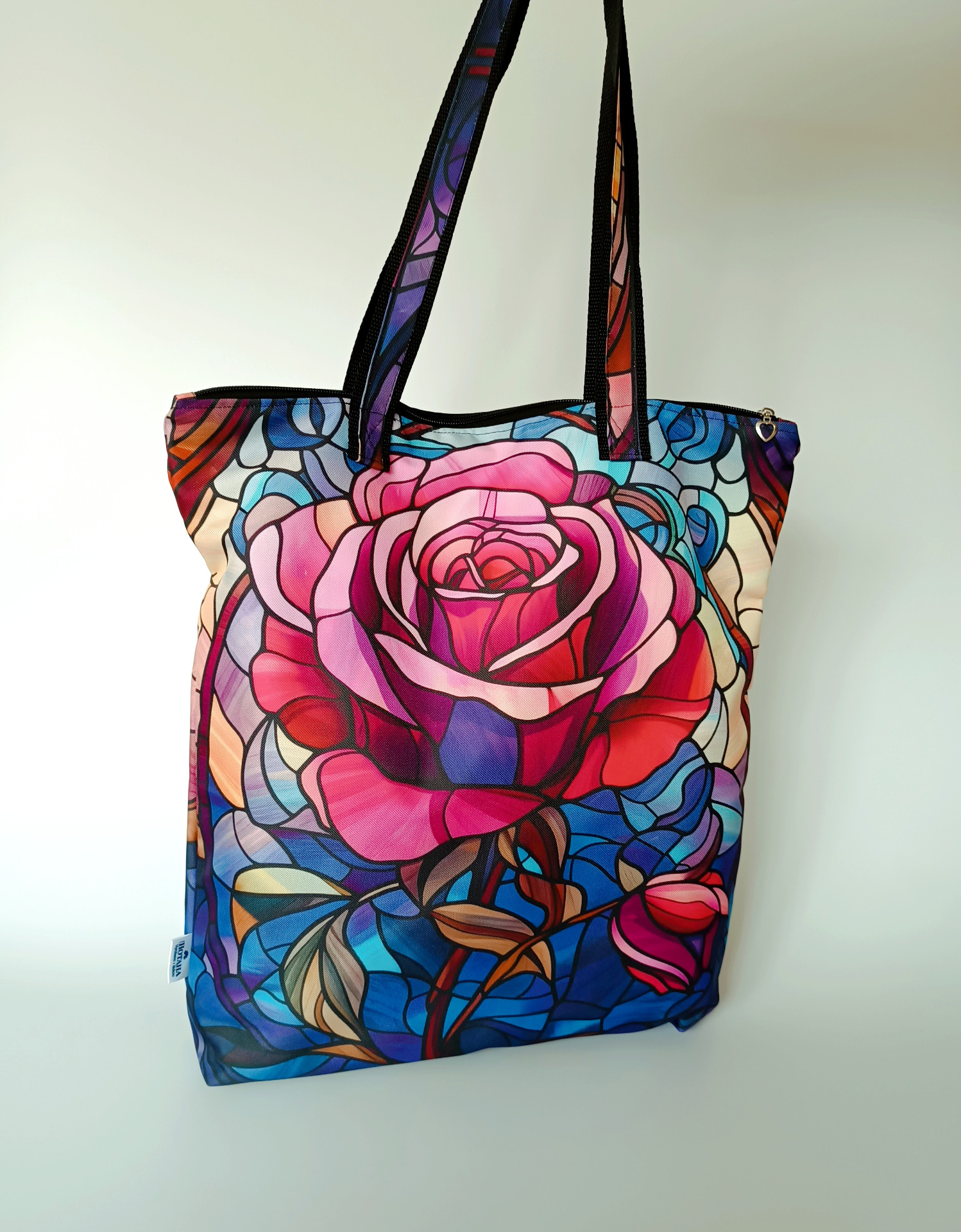 Nákupní taška s dlouhými uchy. Zapínání na zip.